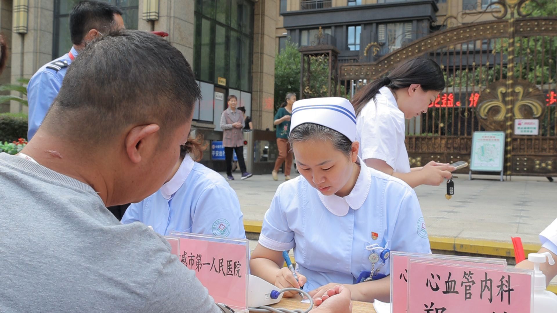 義診現(xiàn)場,6位來自金心團隊的醫(yī)護人員免費為居民們測量血糖、血壓,測心電圖,武漢亞心醫(yī)院駐孝感市第一人民醫(yī)院的閔志勇教授也在現(xiàn)場為居民朋友提供心血管健康咨詢等服務?!跋裎覀兤綍r上下班忙工作,對自己身體狀況啊比較忽視,今天在小區(qū)門口就有一醫(yī)院的醫(yī)生免費測血糖血壓,了解一下自身健康狀況,真的蠻方便我們老百姓,希望能經(jīng)常舉辦這樣的義診?。 鼻皝頊y血糖的李女士感慨道。