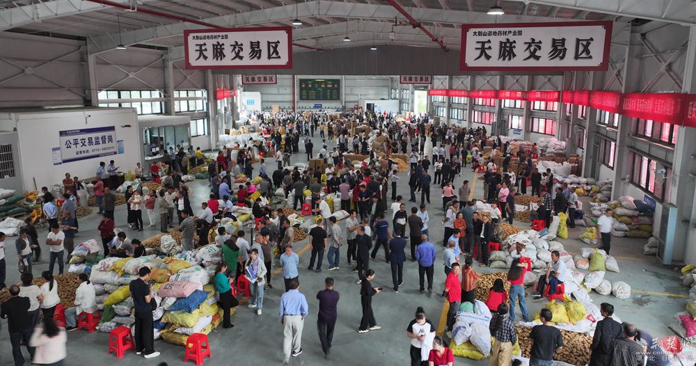2023年10月15日,大別山道地藥材產(chǎn)業(yè)園交易市場(chǎng)在九資河鎮(zhèn)鳴鑼開(kāi)市,當(dāng)日成交額突破2500萬(wàn)元,吸引了2000多名本地藥農(nóng)進(jìn)場(chǎng)售賣(mài),400多名客商從陜西、云南、安徽等地慕名而來(lái)。