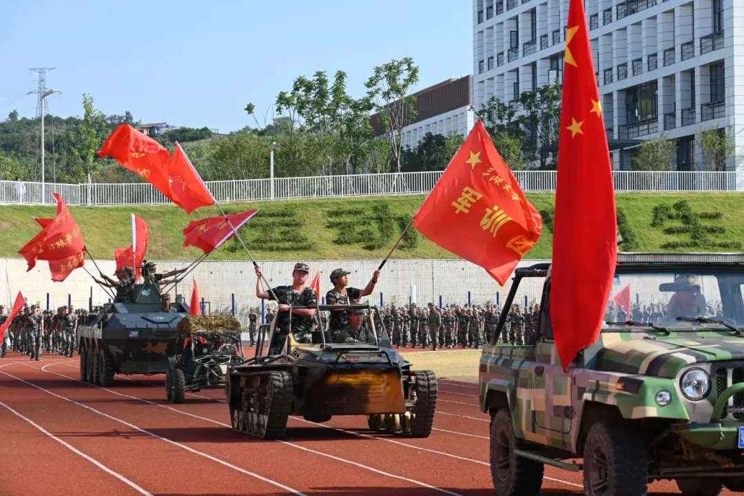 匯演現(xiàn)場(chǎng)氣氛莊嚴(yán)而熱烈,隨著多發(fā)迫擊炮、火箭筒、定向筒發(fā)射入空后,2024級(jí)學(xué)生軍訓(xùn)匯演暨開學(xué)典禮正式開始。國(guó)旗、院旗、團(tuán)旗、重型裝備表演方隊(duì)依次入場(chǎng)接受檢閱,教官摔擒、分列式、刺殺操等表演方陣帶來了震撼精彩的匯報(bào)表演,各軍訓(xùn)方隊(duì)邁著鏗鏘有力的步伐,以昂揚(yáng)飽滿的精神狀態(tài)通過主席臺(tái),進(jìn)行分列式檢閱。各方隊(duì)中的學(xué)子英姿颯爽、目光堅(jiān)定,動(dòng)作整齊劃一,展現(xiàn)出2024級(jí)新生不畏艱難、堅(jiān)韌拼搏的良好精神風(fēng)貌。