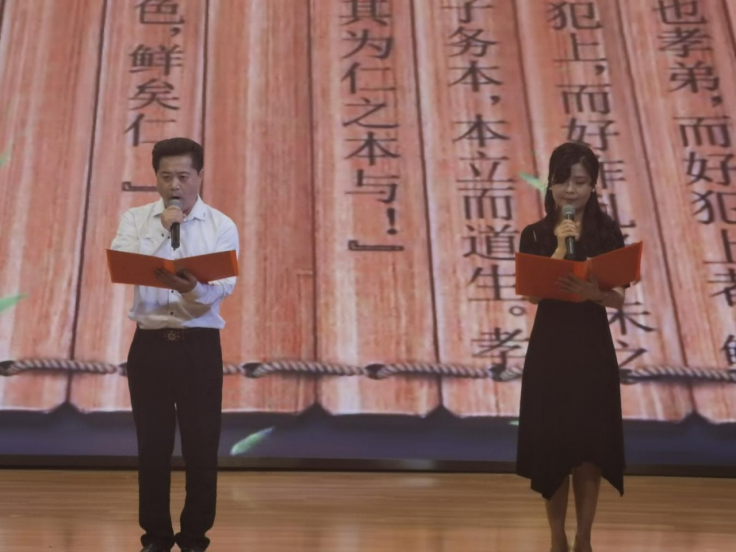 活動在莊嚴而熱烈的氛圍中拉開序幕,市委宣傳部副部長范錫建首先發(fā)表致辭。致辭結束后,一系列豐富多彩的文藝節(jié)目輪番上演,令人目不暇接。女聲獨唱《芝蘭》、舞蹈《祭拜曲舞》、詩朗誦《孔子:智慧之光》、情景劇《傳承》、集體誦讀《對話論語》等節(jié)目以各自獨特的藝術表現形式,頌揚了孔子的儒家思想與人格魅力,展現了中華文化的博大精深。