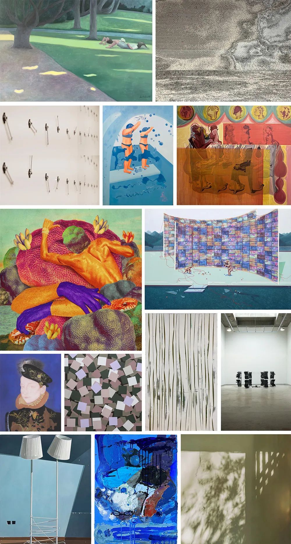 綜合展區(qū)如同一座包羅萬象的藝術(shù)寶庫,以油畫、國畫、版畫、綜合材料、雕塑/裝置、水彩/插畫、攝影、多媒體影像、漆畫及其他藝術(shù)門類為線索設(shè)置10個版塊21個展示區(qū)域,全面呈現(xiàn)藝術(shù)新生代的創(chuàng)作風(fēng)采。