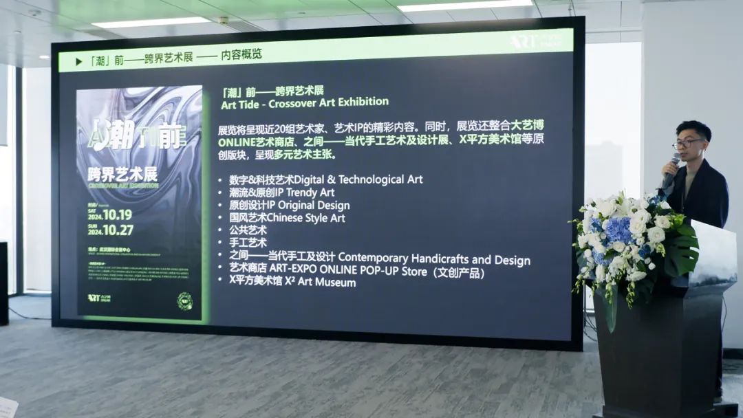 發(fā)布會上,大藝博ONLINE負(fù)責(zé)人陳靜勇介紹了大藝博ONLINE跨界互聯(lián)的案例與本屆大藝博跨界展示專區(qū)“「潮」前——跨界藝術(shù)展”的精彩亮點