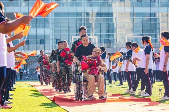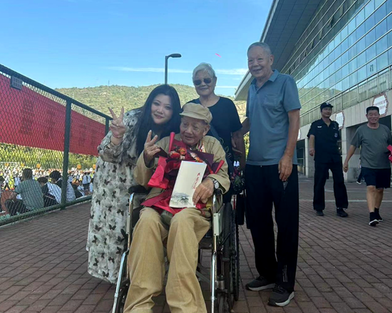 荊楚網(wǎng)(湖北日報網(wǎng))訊(記者呂鑒蕾、通訊員黃旺宣、范晨熠、李俊)9月29日,湖北師范大學附屬中學(黃石一中)操場,當98歲的老兵由家人推著輪椅,緩緩走上紅地毯時,現(xiàn)場爆發(fā)出雷鳴般的掌聲。