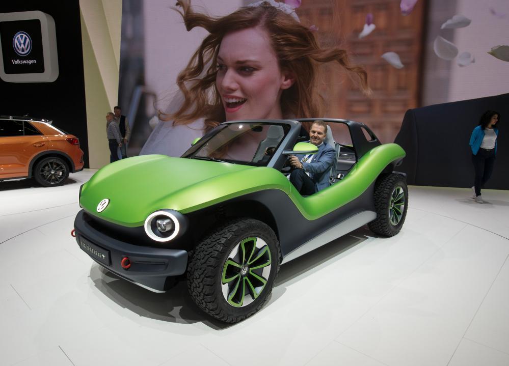 這是2019年3月6日在瑞士日內(nèi)瓦國(guó)際車展上拍攝的大眾汽車公司的全地形電動(dòng)概念車ID.BUGGY。新華社記者徐金泉攝