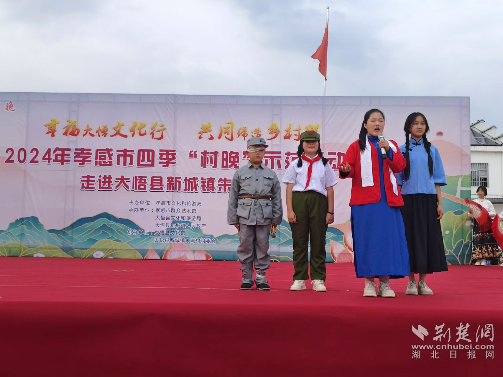 非遺傳承人表演鋼鐮大鼓《旅游請(qǐng)到大悟來》,傳承紅色文化,展大悟豐富的旅游資源,迎四面八方之客;新城鎮(zhèn)中心小學(xué)六年級(jí)學(xué)生表演舞臺(tái)劇《穿越時(shí)空的對(duì)話》,通過刻畫革命先輩和當(dāng)代青少年的對(duì)話,以獨(dú)特的創(chuàng)意和生動(dòng)的演繹,展現(xiàn)了革命歷史的厚重與傳承,激發(fā)著觀眾的愛國(guó)情懷和奮斗精神……現(xiàn)場(chǎng)熱鬧非凡,給村民帶來了一場(chǎng)視覺聽覺盛宴。