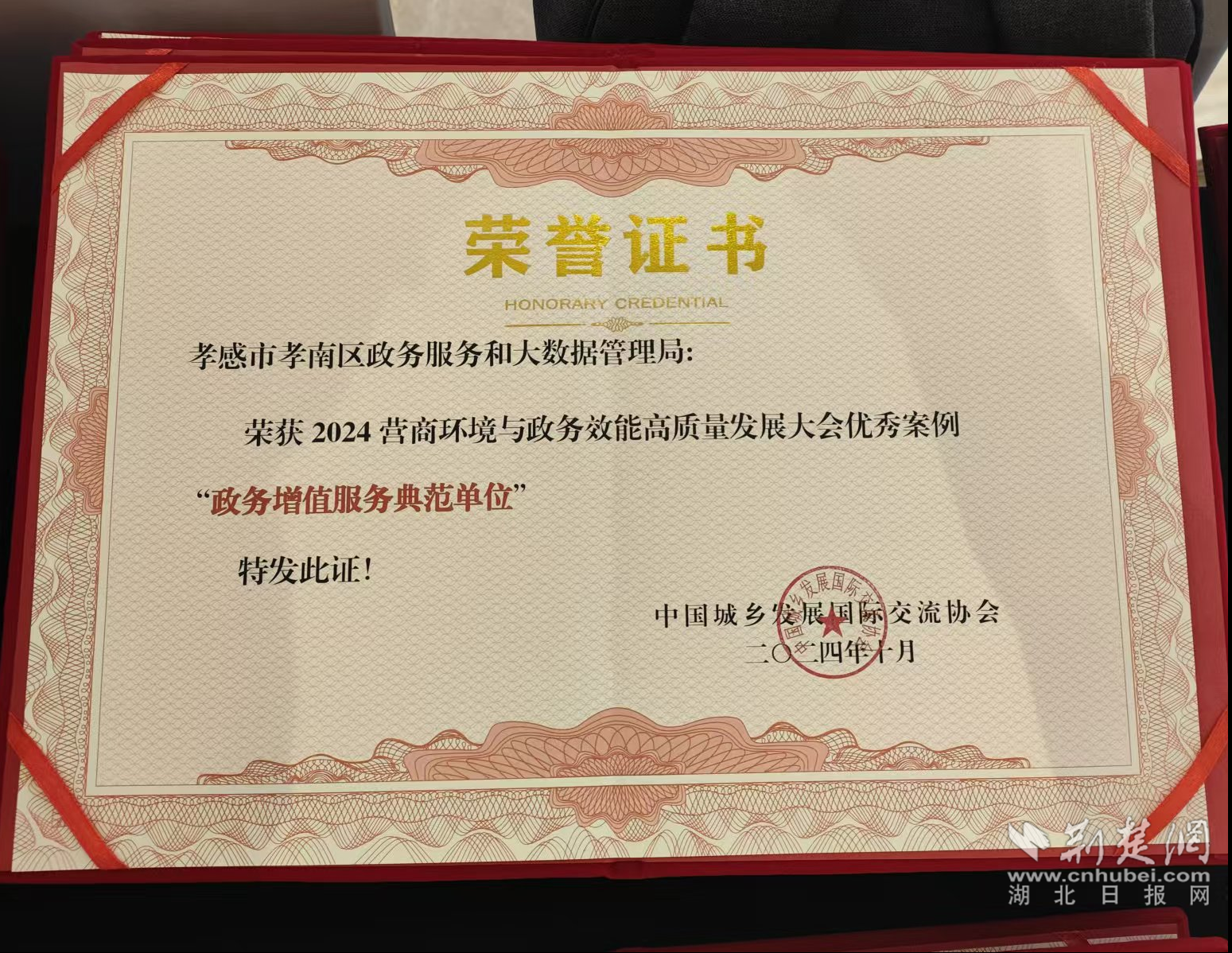 荊楚網(wǎng)(湖北日報網(wǎng))訊(通訊員 葉進(jìn)軍、戰(zhàn)婷婷)10月17日,2024營商環(huán)境與政務(wù)效能高質(zhì)量發(fā)展大會在北京市通州區(qū)舉行。經(jīng)組委會推薦、專家評審委員會評審,《孝感市“跨域通辦”新模式促進(jìn)政務(wù)服務(wù)效能再提升》《深化“一窗通辦”改革 助力“高效辦成一件事”》《做實(shí)惠企政策推送 推動營商環(huán)境優(yōu)化》3個案例入圍優(yōu)秀案例,孝感市獲評“推進(jìn)跨域通辦典范單位”“政務(wù)增值服務(wù)典范單位”“區(qū)域經(jīng)濟(jì)發(fā)展創(chuàng)新單位”3項獎項。