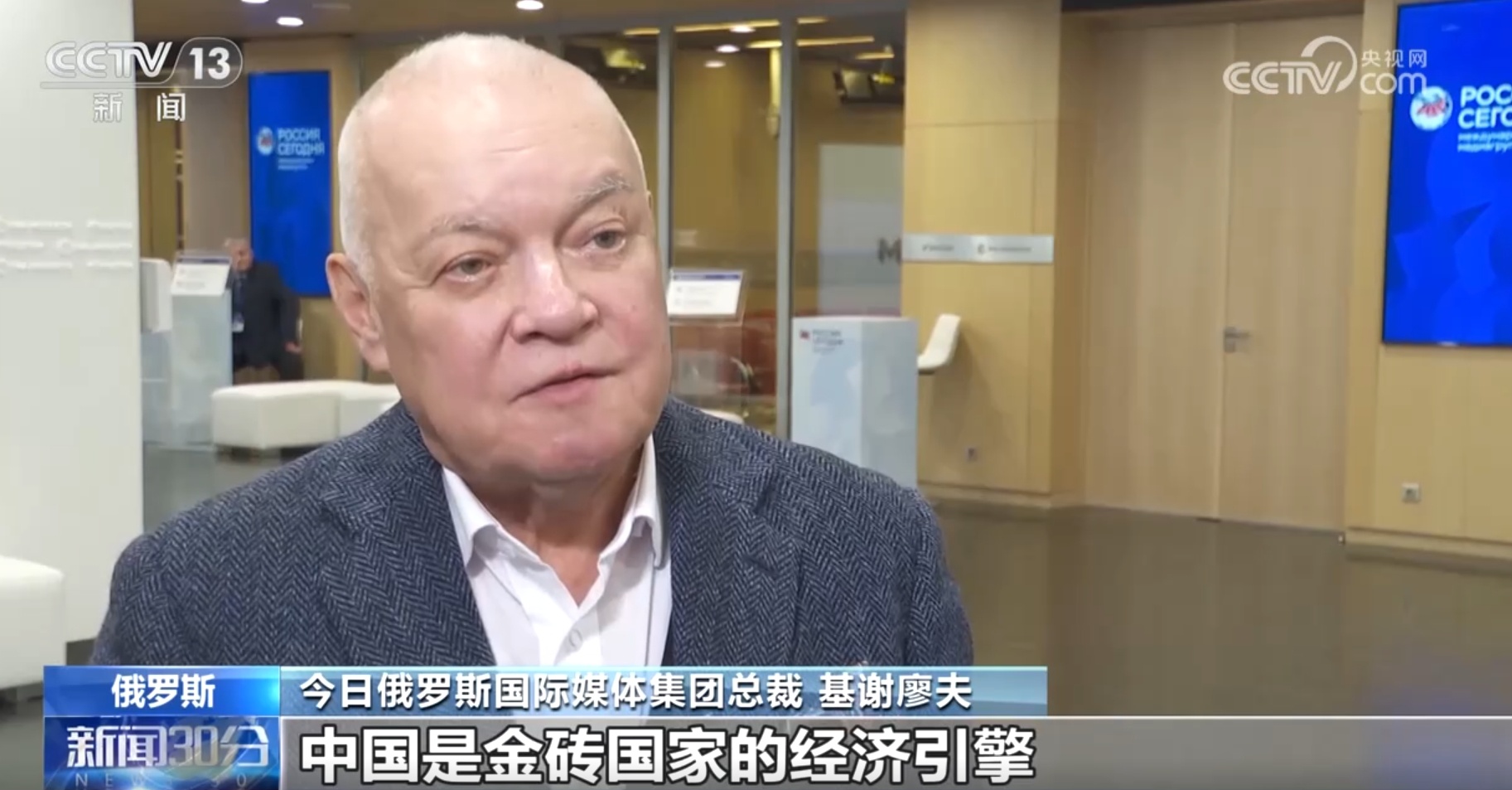 今日俄羅斯國(guó)際媒體集團(tuán)總裁基謝廖夫稱(chēng):“中國(guó)是金磚國(guó)家的經(jīng)濟(jì)引擎,其他國(guó)家也作出了應(yīng)有的貢獻(xiàn),我也非常希望金磚國(guó)家繼續(xù)加強(qiáng)人文合作。”