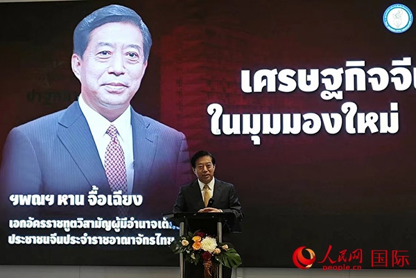 中國(guó)駐泰國(guó)大使韓志強(qiáng)在開(kāi)幕式上致辭。人民網(wǎng)記者 孫廣勇攝