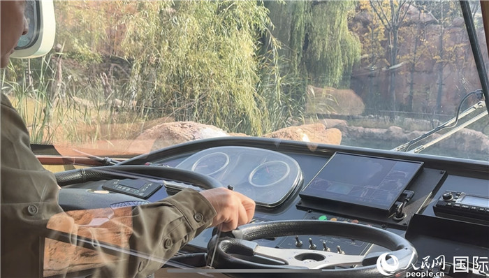 鄭州銀基動物王國水陸兩棲觀光車駕駛室。人民網(wǎng) 謝瑩攝