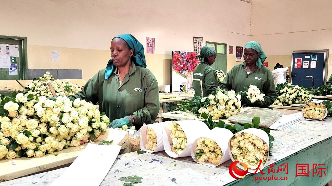 今年,肯尼亞凱倫玫瑰公司將在標(biāo)銀集團(tuán)的支持下參加第七屆進(jìn)博會(huì),展出鮮花、咖啡、牛油果等產(chǎn)品。圖為公司鮮花工廠的工人在包裝剛采摘下來的玫瑰花。人民網(wǎng)記者 黃煒鑫攝