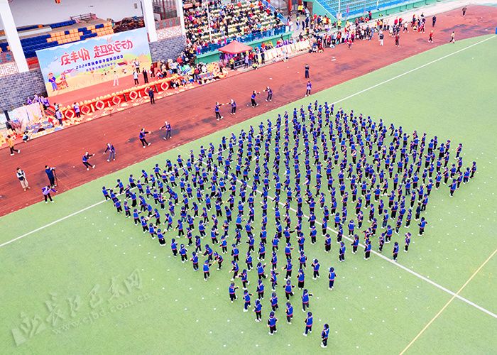 豐收秀場,秀出夢想。提著籃筐的“田間小精靈”方隊,身著統(tǒng)一鮮艷的服裝,就像一片片生機勃勃的小麥田,他們手中的小籃子滿載著豐收的喜悅和期待;身著土家族傳統(tǒng)服飾的小小運動員們手拿鋤頭,神采飛揚;“玉米隊”的運動員們頭戴草帽,身背背簍,手拿玉米,展現(xiàn)了勤勞勇敢、團結(jié)協(xié)作的精神風(fēng)貌……