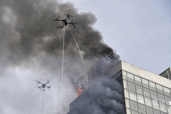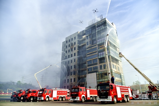 在滅火救援過程中,黃石消防首次設置無人機滅火科目,配合云梯車人員疏散、火場緊急避險、高層供水、內部攻堅等實戰(zhàn)化內容,向參會人員展示了黃石市消防救援隊伍建設成效。