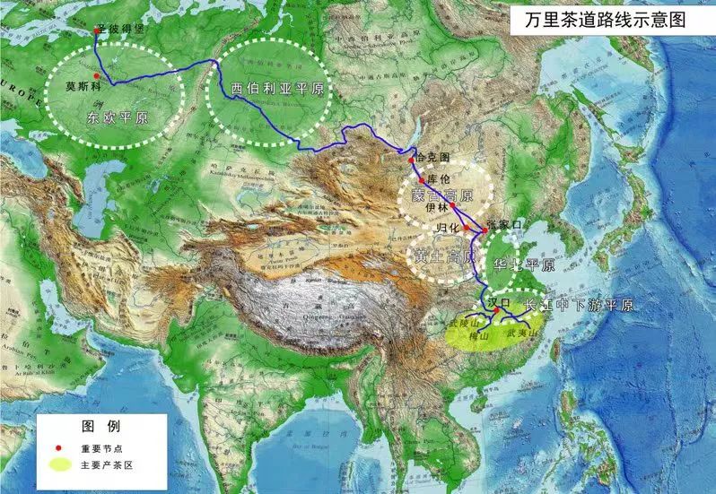 萬里茶道全長14000公里,是17世紀(jì)末至20世紀(jì)前期古代中國與俄國之間以茶葉為大宗商品的國際貿(mào)易線路,連接起中國的福建、江西、安徽、湖南、湖北、河南、山西、河北、內(nèi)蒙古,蒙古國的賽音山達(dá)、烏蘭巴托、阿勒坦布拉格,以及俄羅斯的恰克圖、伊爾庫茨克、喀山、莫斯科、圣彼得堡等城市,由一系列茶園、茶村、古道、 碼頭、橋梁、關(guān)隘、建筑群、街區(qū)、集鎮(zhèn)等歷史文化遺產(chǎn)組成,這些遺產(chǎn)是三國和平交往、命運(yùn)與共的重要見證,更是三國人民民心相通、世代友好的重要見證。