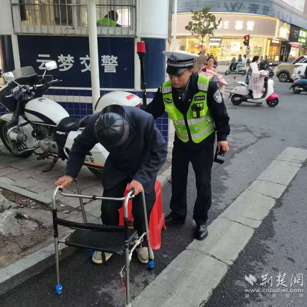 當日17時許,云夢縣公安局交警大隊在夢澤大道孝武紅綠燈路口執(zhí)勤時,突然,一位神情恍惚的老人雙手緊握助步器,在街道上徘徊著四處張望,好像迷了路的樣子,在川流不息的街上顯得格外危險,引起了執(zhí)勤交警的注意。