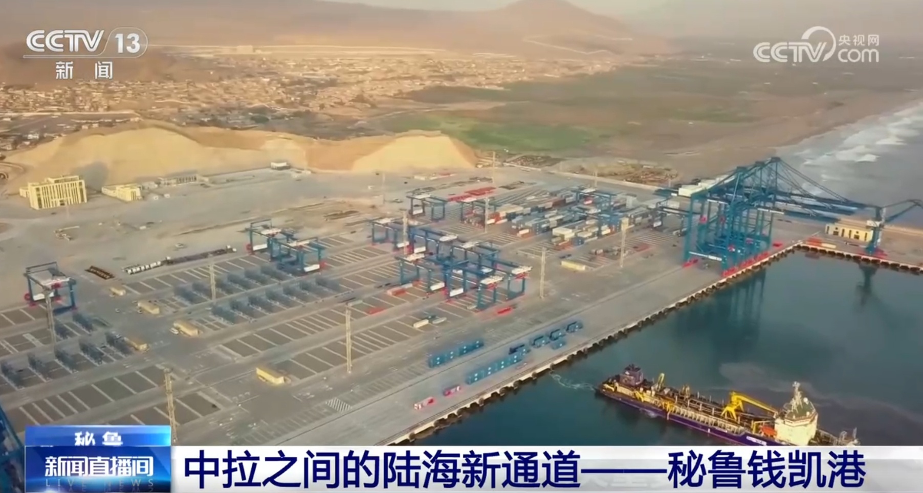 央視網(wǎng)消息:位于秘魯首都利馬以北錢凱灣內(nèi)的錢凱港,是中秘共建“一帶一路”重要項(xiàng)目,也是南美首個(gè)智慧港口,是中國(guó)和秘魯兩國(guó)合作共贏、互利互惠的典范,更是中拉合作的生動(dòng)縮影。下面我們通過一個(gè)短片,來了解這條中拉之間的陸海新通道。