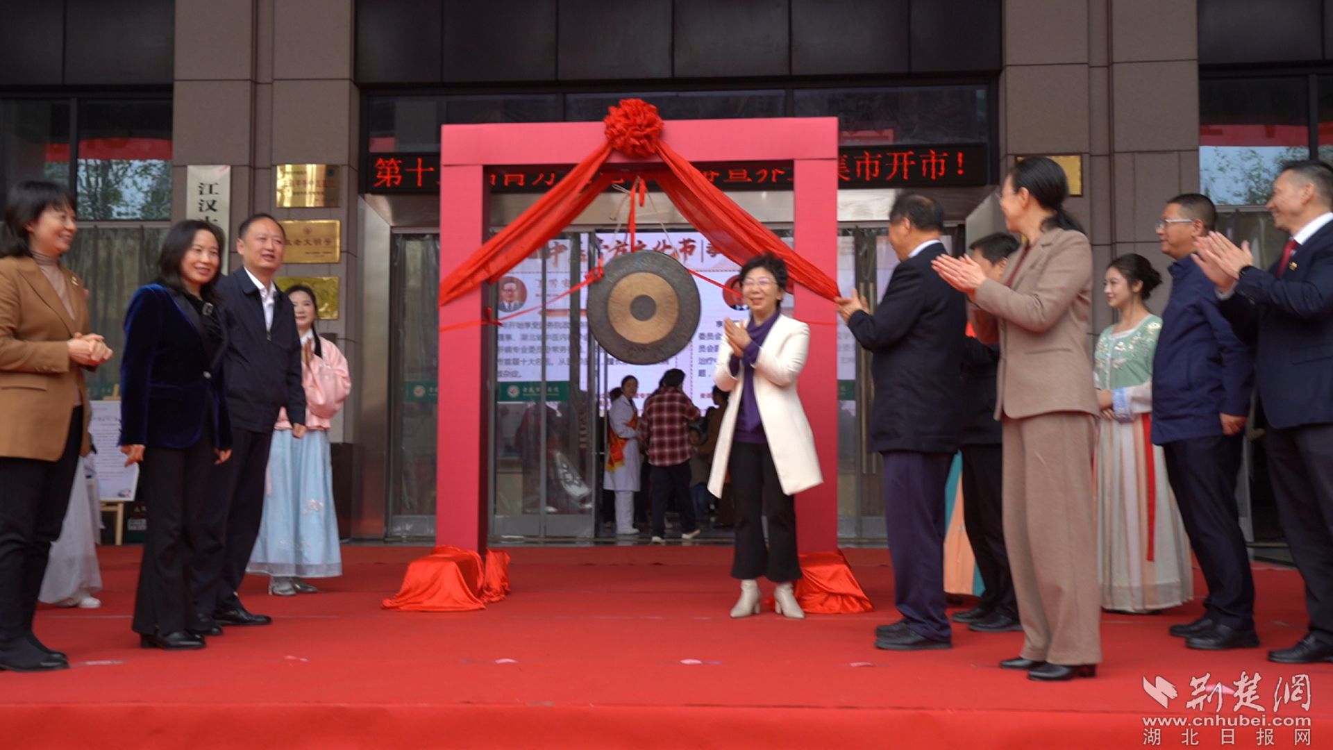 宣布膏方節(jié)開(kāi)幕并敲響?zhàn)B生集市開(kāi)市銅鑼。舒俊杰 攝