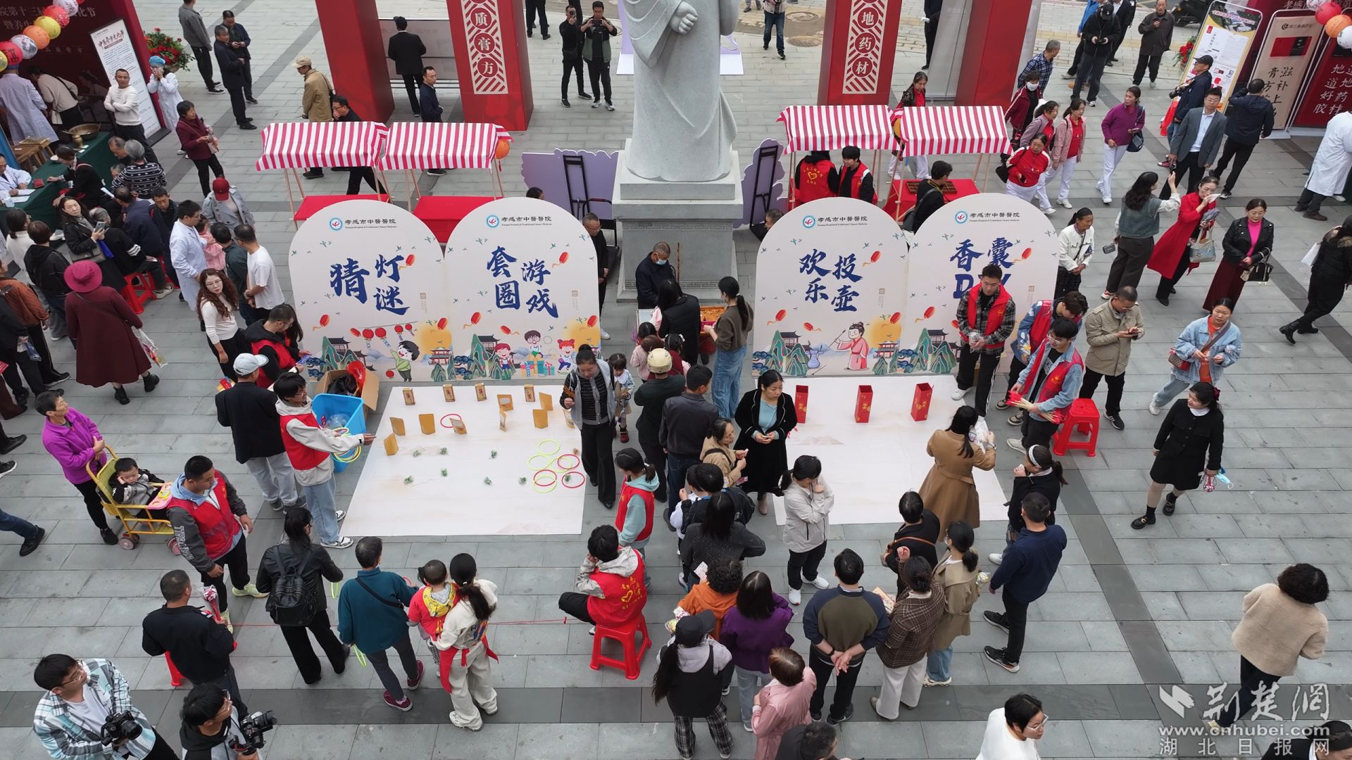 活動(dòng)當(dāng)天,孝感市中醫(yī)醫(yī)院航空院區(qū)的時(shí)珍廣場(chǎng)人聲鼎沸,熱鬧非凡。廣場(chǎng)上特別設(shè)立了多個(gè)互動(dòng)體驗(yàn)區(qū),包括中醫(yī)外治療法體驗(yàn)、中藥炮制展覽、名貴中藥材展示、膏方熬制展示、中藥茶飲品嘗等。