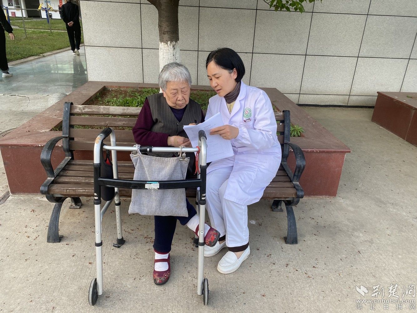 去年冬天,90歲的楊奶奶不慎摔跤,導致髖部骨折,髖部骨折被稱為“人生的最后一次骨折”,老人骨折后一年內死亡率達20%。劉惠林迅速聯(lián)系孝感市第一人民醫(yī)院院長、骨科專家代立武,骨科主任劉宏團隊為楊奶奶做手術。在楊奶奶康復期間,她也一直陪伴在側,幫助楊奶奶完成康復動作,多方協(xié)調楊奶奶的治療護理及康復,最終,90歲高齡的楊奶奶僅用35天便能下地行走。