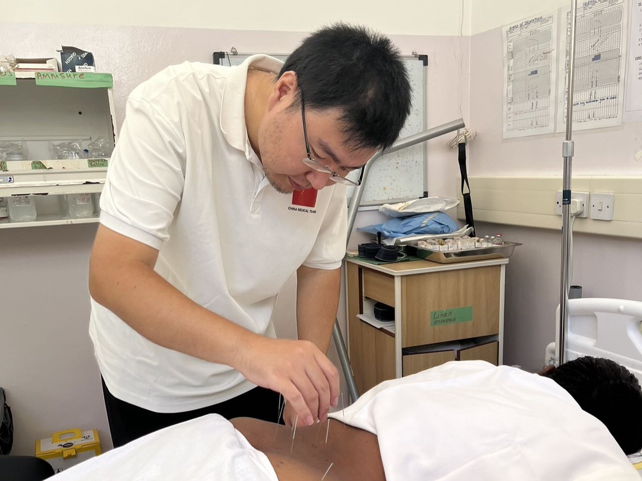 患者在接受針灸治療。中國援塞舌爾醫(yī)療隊供圖