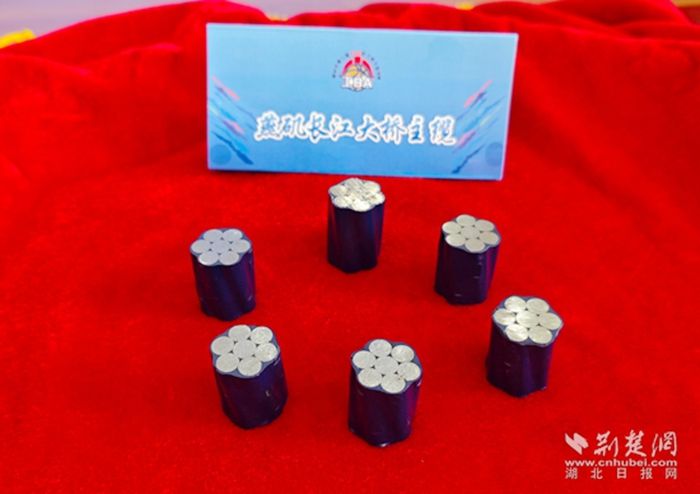 燕磯長江大橋是世界最大跨徑四主纜懸索橋,也是世界首座不同垂度四主纜雙層鋼桁梁懸索橋。此次大賽獎杯將運用大橋的6根主纜纜芯,它是2100兆帕的高強鋼索,希望參賽隊員們能夠抗住比賽的高壓,展現出永不放棄的拼搏精神和銳意進取的昂揚風采。