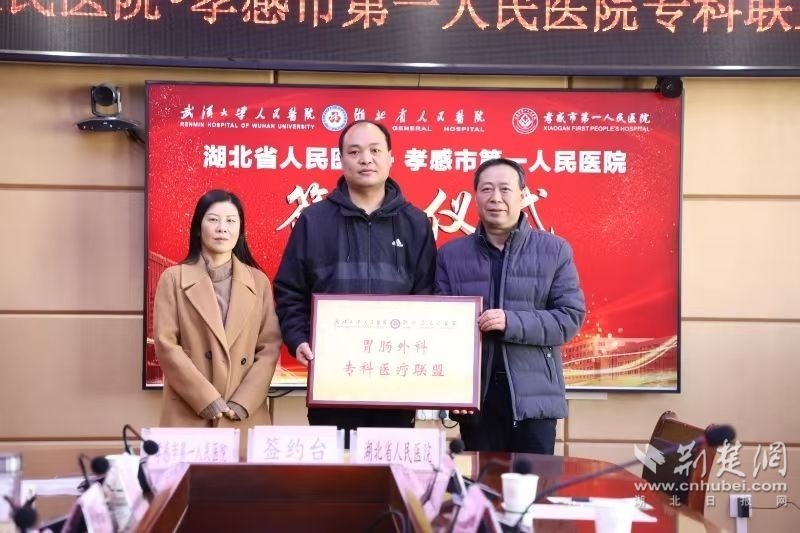 荊楚網(wǎng)(湖北日報網(wǎng))訊(通訊員胡佳萍)11月28日,武漢大學人民醫(yī)院授予孝感市第一人民醫(yī)院“婦產(chǎn)科??漆t(yī)療聯(lián)盟”“胃腸外科專科聯(lián)盟”和“林慧慶教授專家團隊工作室”牌匾,并現(xiàn)場簽約,開啟兩院合作新篇章。