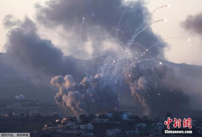 圖為當(dāng)?shù)貢r(shí)間9月23日,以色列發(fā)動(dòng)襲擊后,黎巴嫩南部濃煙滾滾。