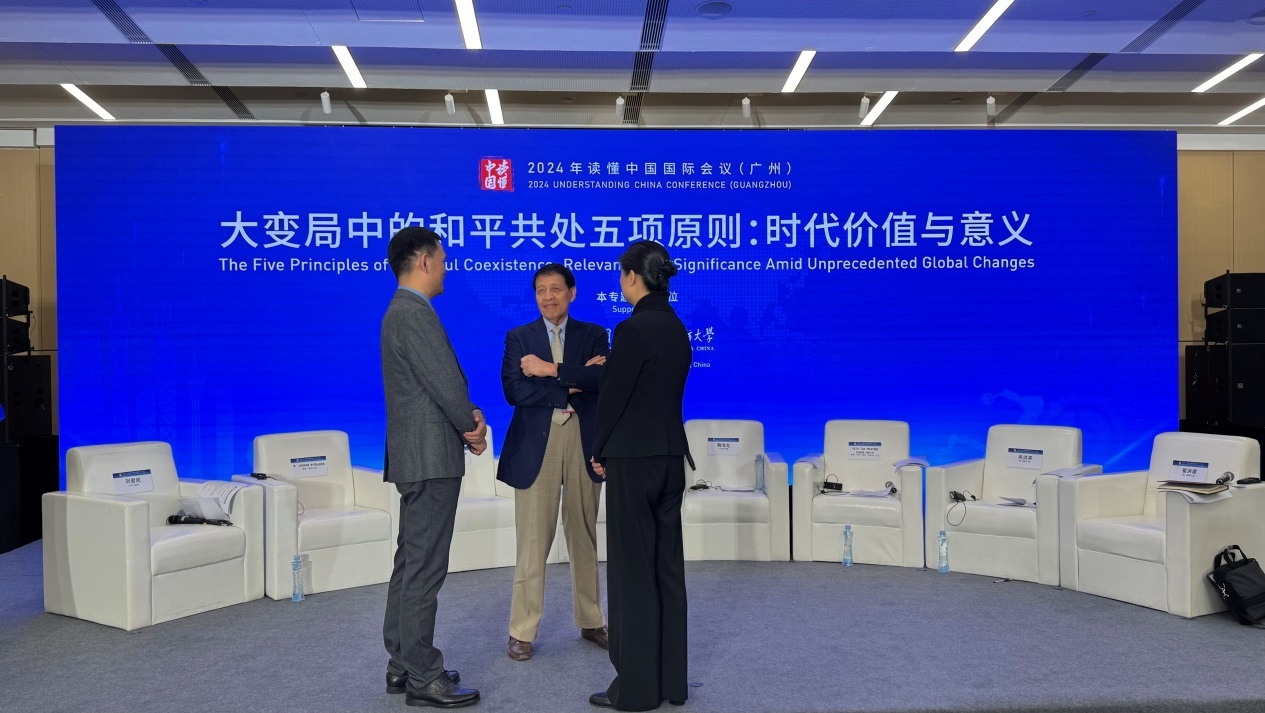 △印尼前外長(zhǎng)哈?!ぞS拉尤達(dá)(中)在“讀懂中國(guó)”國(guó)際會(huì)議上與嘉賓交流