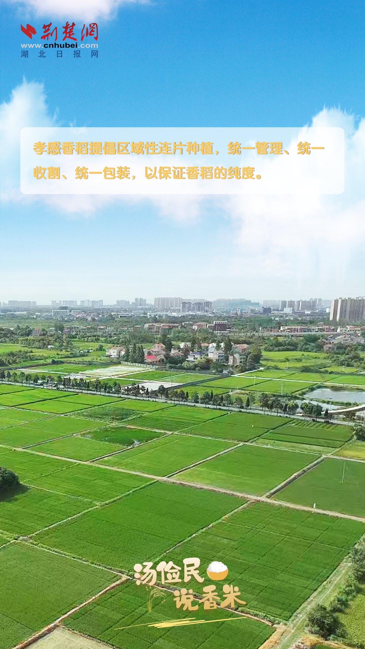 萌芽、分蘗、拔節(jié)、抽穗……一粒香稻種子,經(jīng)過(guò)春耕夏耘秋收的洗禮,茁壯成長(zhǎng)為金黃飽滿的稻穗,歷經(jīng)脫粒去殼、精碾細(xì)磨等工序,最終以潔白如玉的身姿滋養(yǎng)著一方百姓。這粒香米,經(jīng)無(wú)數(shù)孝感農(nóng)人的堅(jiān)守傳承以及科研工作者們接力式改良優(yōu)化,才有了今天 “好吃、好種、好賣” 的具有獨(dú)特芳香的孝感香米。