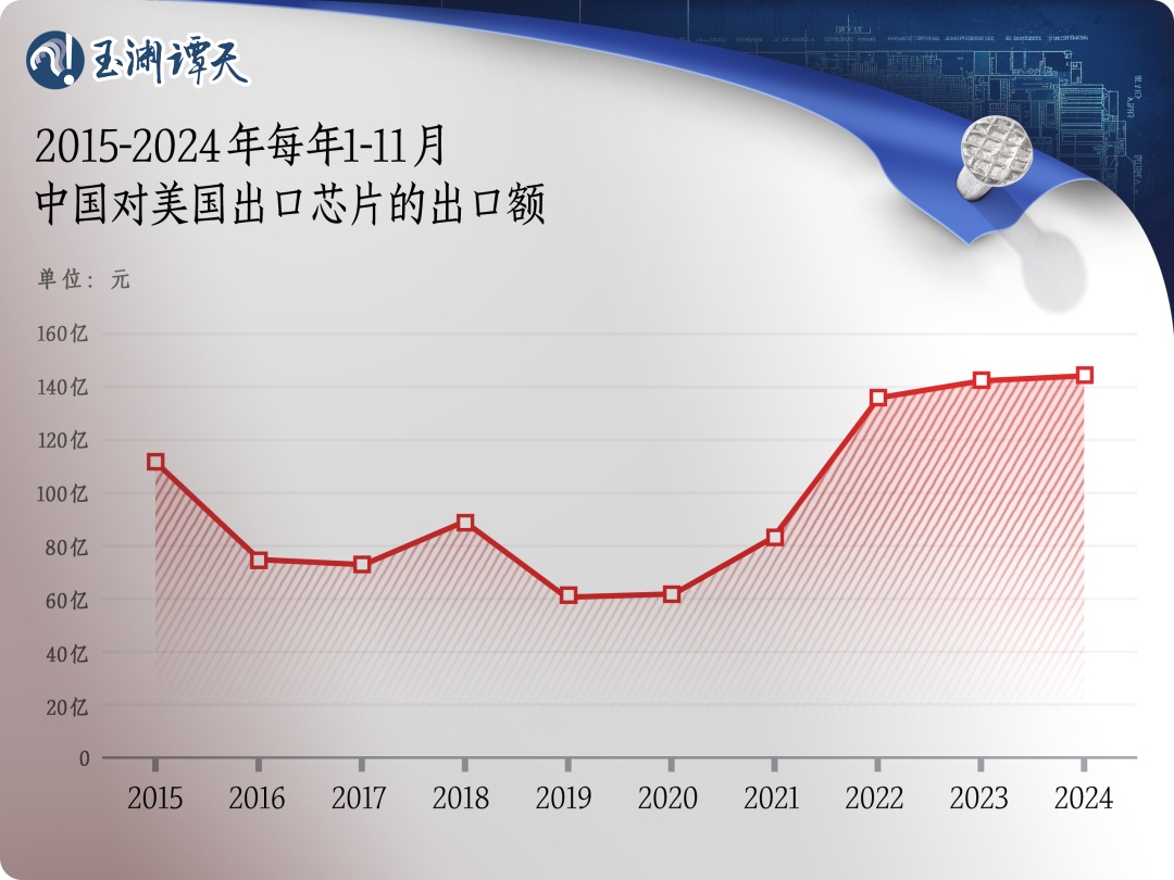 但在查詢了中國對美國出口芯片的數據后,譚主發(fā)現,事情并不是這么簡單。