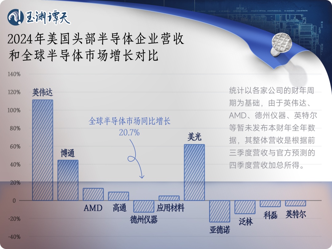 2024年,全球芯片市場都在回暖,預計同比增長20.7%。與此同時,英偉達2024年營收預計同比增長超100%,成為美國芯片市場增長最大的動力。