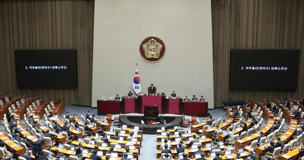 韓國(guó)最大在野黨共同民主黨26日向國(guó)會(huì)提請(qǐng)彈劾韓德洙,國(guó)會(huì)27日就此進(jìn)行表決。與彈劾總統(tǒng)需獲國(guó)會(huì)300名議員中三分之二贊成不同,彈劾總理僅需過半數(shù)即151名議員贊成即可通過。而在野黨陣營(yíng)在國(guó)會(huì)擁有192個(gè)議席,執(zhí)政黨只有108個(gè)議席。