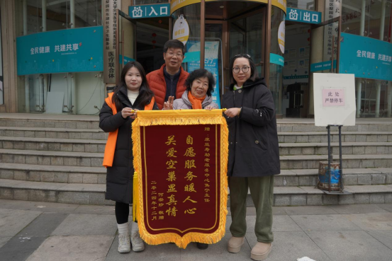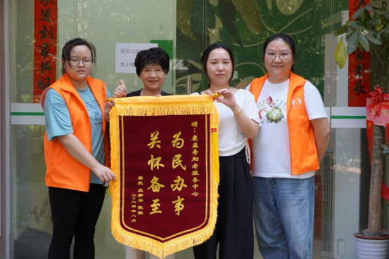 在東山亭社區(qū),陳婆婆的丈夫因病住院,她自己行動(dòng)不便,買藥成了一大難題??狄鎵壑戏?wù)中心的點(diǎn)位工作人員得知情況后,主動(dòng)免費(fèi)為陳婆婆跑腿買藥,成功解決了她的吃藥難題。事后為表達(dá)感謝,婆婆特地送來(lái)錦旗。