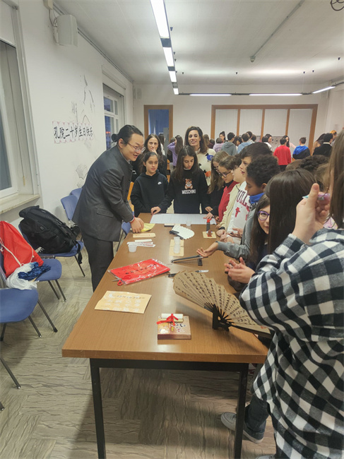 人民網(wǎng)羅馬1月13日電 (記者謝亞宏)圣馬力諾大學(xué)孔子學(xué)院日前在圣馬力諾中學(xué)舉辦開放日,慶??鬃訉W(xué)院20周年生日。圣馬力諾中學(xué)校長(zhǎng)雷莫和圣馬力諾大學(xué)孔子學(xué)院外方院長(zhǎng)致歡迎詞,師生百余人參加。
