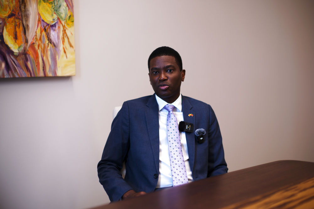 1月6日,格林納達(dá)總理迪康·米切爾在首都圣喬治接受新華社記者專訪。新華社記者趙凱攝