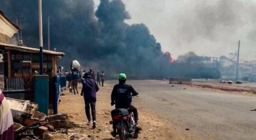 據(jù)了解,當時一輛滿載汽油的油罐車發(fā)生事故,油罐墜落到路面。附近居民哄搶燃料時油罐車起火爆炸。