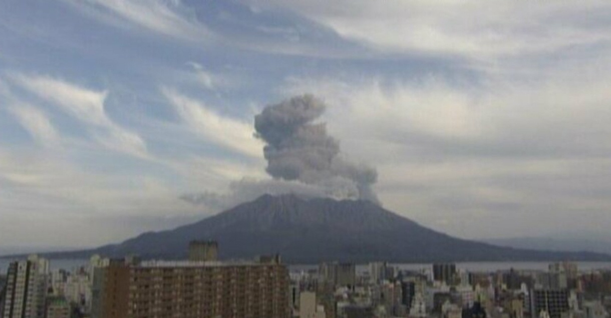當(dāng)?shù)貢r間1月19日15時26分左右,日本鹿兒島縣櫻島南岳山頂火山口發(fā)生噴發(fā),火山灰柱最大高度達(dá)2000米。(總臺報道員 柏春洋)