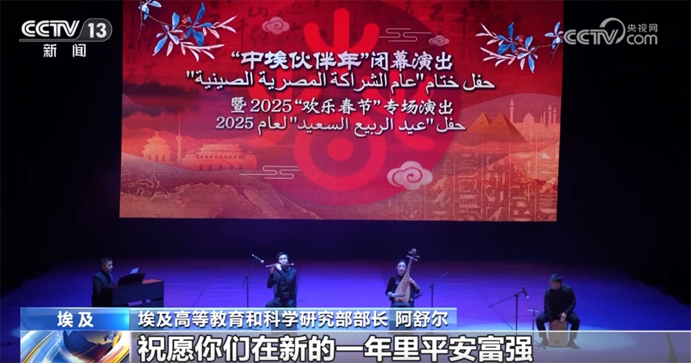 日前,由中國(guó)駐埃及使館舉辦的“中埃伙伴年”閉幕演出暨2025“歡樂(lè)春節(jié)”專場(chǎng)演出在開(kāi)羅舉行。中國(guó)駐埃及使館臨時(shí)代辦張濤在致辭中表示,中埃關(guān)系朝著構(gòu)建面向新時(shí)代的中埃命運(yùn)共同體目標(biāo)加速邁進(jìn)。