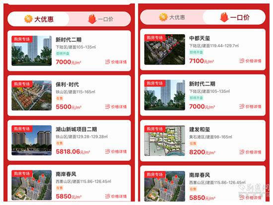線上,該市在東楚優(yōu)房APP上,開(kāi)辟“‘宜居黃石’春節(jié)返鄉(xiāng)安居”購(gòu)房專(zhuān)版,各房地產(chǎn)開(kāi)發(fā)項(xiàng)目按照自愿原則拿出房源,下設(shè)“一口價(jià)”和“大優(yōu)惠”2個(gè)專(zhuān)欄?!耙豢趦r(jià)”專(zhuān)欄集中展示特價(jià)房源;“大優(yōu)惠”專(zhuān)欄集中展示特價(jià)房外的其它優(yōu)惠房源。