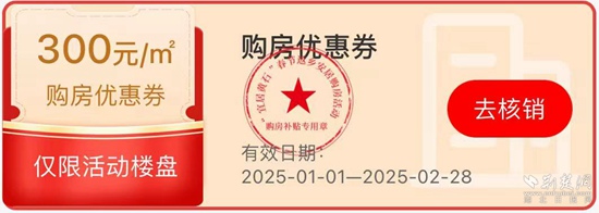 值得注意的是,此次專(zhuān)場(chǎng)活動(dòng)的“購(gòu)房?jī)?yōu)惠券”僅限在參與本次專(zhuān)場(chǎng)“大優(yōu)惠”活動(dòng)的房地產(chǎn)項(xiàng)目房源中使用,不能同時(shí)參與“一口價(jià)”優(yōu)惠活動(dòng)?!百?gòu)房?jī)?yōu)惠券”僅限在2025年1月1日至2月28日期間使用,逾期未使用則自動(dòng)失效。