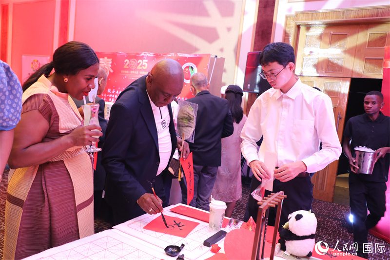 招待會(huì)現(xiàn)場(chǎng)設(shè)立中國(guó)書法、茶藝、民族服飾、非遺作品等文化展臺(tái)以及水餃、點(diǎn)心、冰糖葫蘆等中式美食品鑒,中南雙方共同奉上武術(shù)、歌舞等文藝演出。與會(huì)嘉賓體驗(yàn)中華文化,品嘗特色美食,現(xiàn)場(chǎng)氣氛喜慶熱烈。