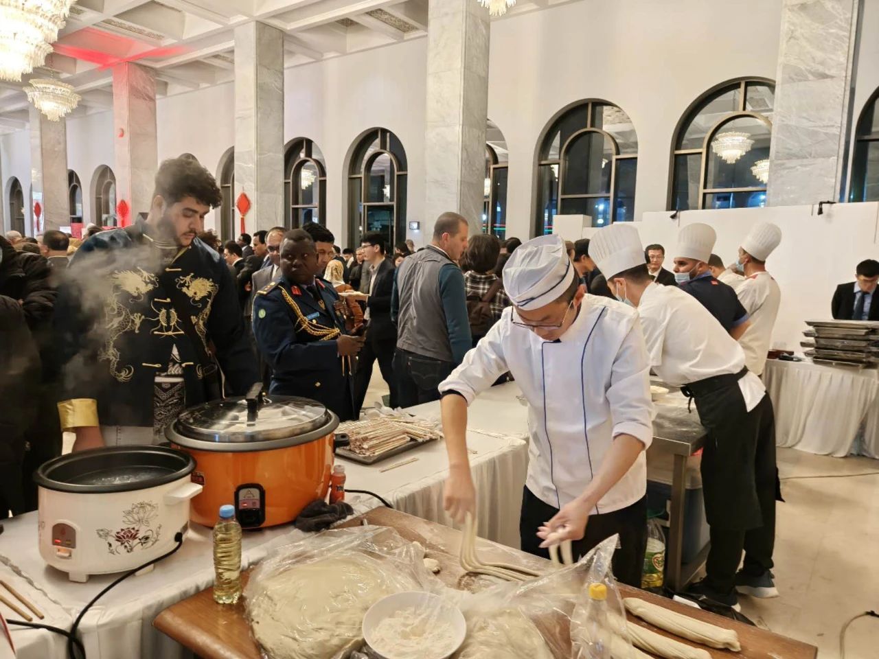 嘉賓們品嘗中國(guó)美食拉面。中國(guó)駐阿爾及利亞大使館供圖