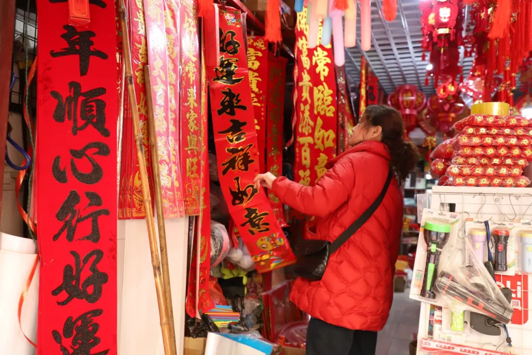 “今天我主要來買對聯(lián)和紅燈籠?!笔忻窈空f,過年,就是要把家里裝飾得喜慶一些,才有年味。