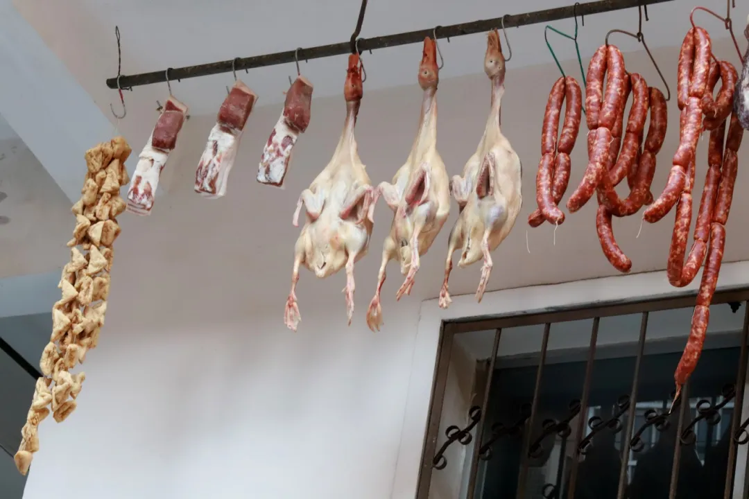 每逢過年,臘貨就成了孝感人的“寵兒”,家家戶戶陽臺上除了衣服,還會掛上豆腐、雞鴨魚肉、香腸等等,這些臘貨在陽光下泛著油光,散發(fā)出濃郁的香味,讓人垂涎欲滴,仿佛在訴說著過年的熱鬧與豐盈,也承載著人們對美好生活的向往和對團圓的期盼。