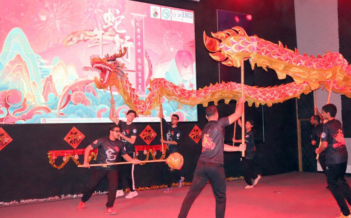 舞龍。摩洛哥哈桑二世大學(xué)孔子學(xué)院供圖