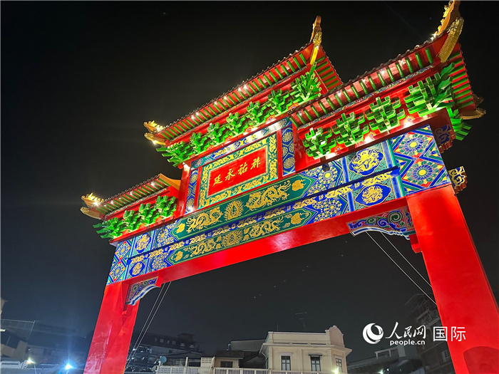 曼谷中國城崇圣牌樓。人民網(wǎng)記者 簡承淵攝