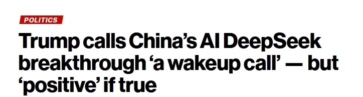 當?shù)貢r間1月27日晚,特朗普在佛羅里達州邁阿密發(fā)表講話時,對DeepSeek攪動納斯達克一事表示,DeepSeek的出現(xiàn)“給美國相關產業(yè)敲響了警鐘”,美國“需要集中精力贏得競爭”。特朗普同時表示,他認為,DeepSeek的模型高效且經濟,其出現(xiàn)是一種積極的發(fā)展。