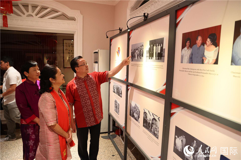 菲律賓總統(tǒng)夫人麗莎在黃溪連大使陪同下觀看中菲建交50周年圖片展。人民網(wǎng)記者 樊帆攝