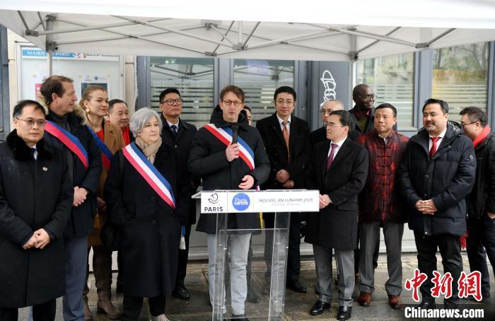 1月29日,巴黎中心區(qū)舉行活動慶祝中國蛇年春節(jié)。圖為巴黎中心區(qū)區(qū)長威爾發(fā)表講話,向大家致以節(jié)日的問候與祝福?!±钛?攝