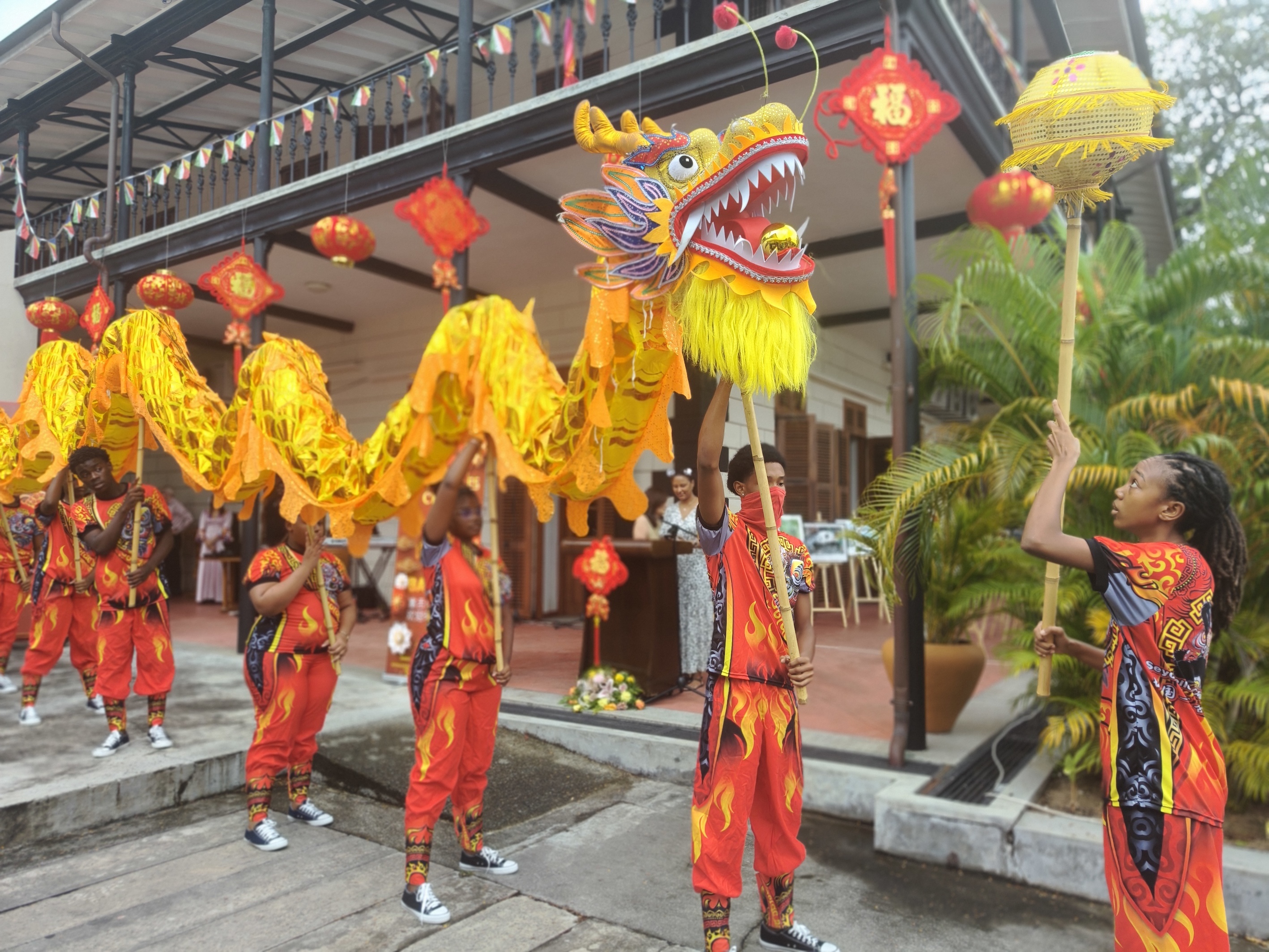 舞龍表演。中國(guó)駐塞舌爾大使館供圖