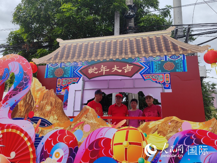 中國駐菲律賓大使黃溪連夫婦及華社領(lǐng)導(dǎo)在花車上向民眾揮手致意送上新春祝福,并派發(fā)新年紅包。人民網(wǎng)記者 樊帆攝